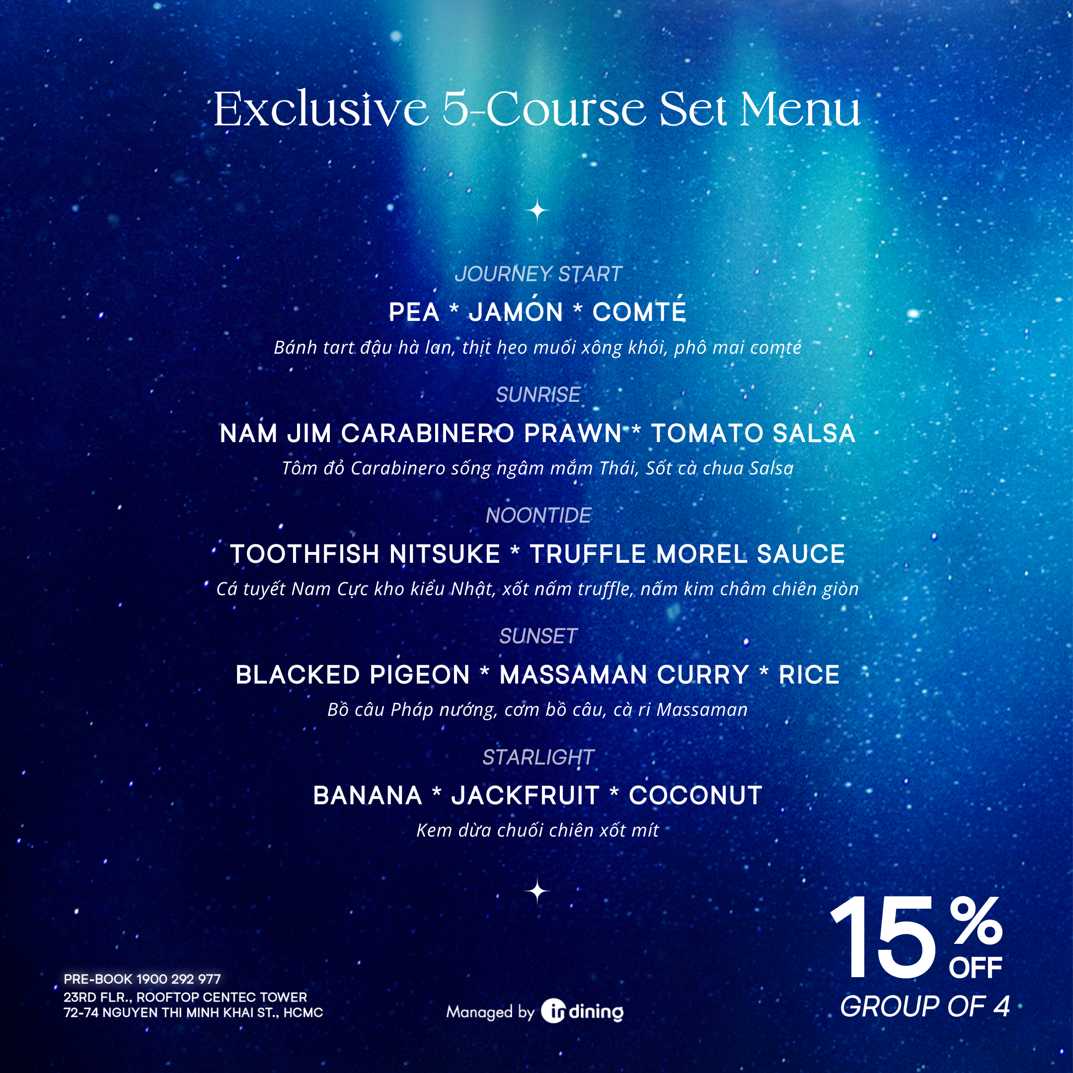 From Sunrise to Starlight – Exclusive 5-Course Set Menu A refined gastronomic journey inspired by the majestic Alps, where every flavor is meticulously crafted and elevated with Edelweiss — the key ingredient that defines these exclusive dishes, available only in this special set menu.